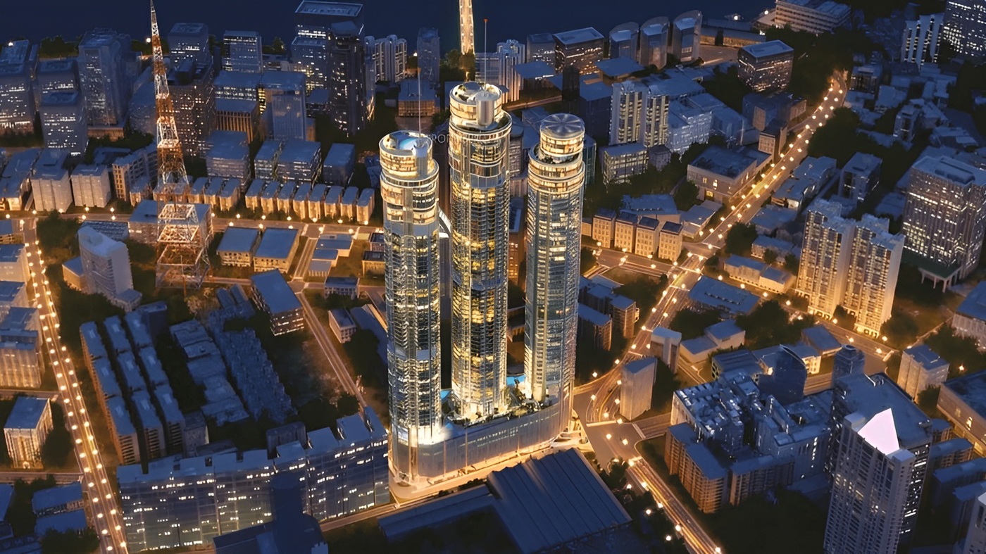 - 3 towers, each 70+ stories (tallest: 300 meters)
